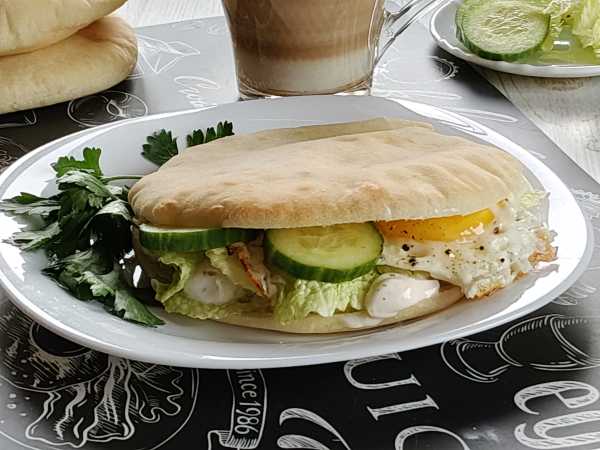 Питу с яйцом, собственно, и будем готовить из этих ингредиентов, плюс еще я взяла немного капусты, огурца и соуса.