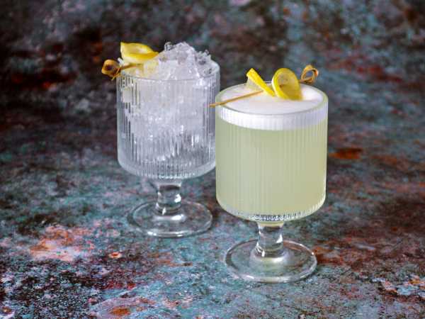 В шейкере соединить джин, лимонный сок, сахарный сироп и белок.