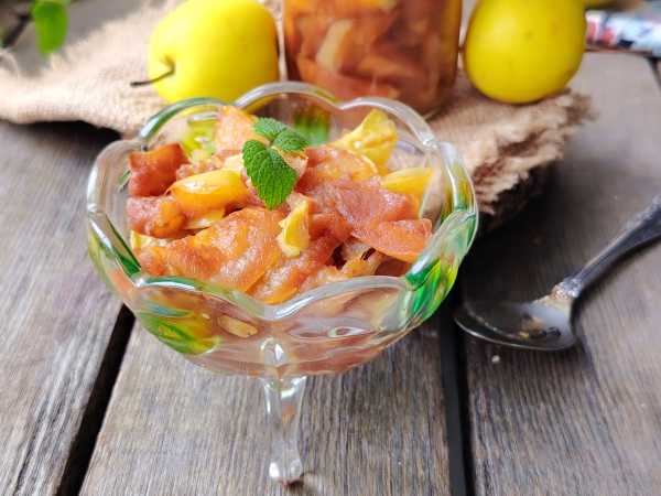 Соберите ингредиенты для приготовления варенья из персиков и яблок на зиму.