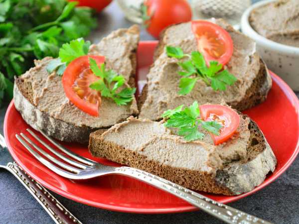 Соберите все ингредиенты для приготовления бутербродов с паштетом из печени (куриной).