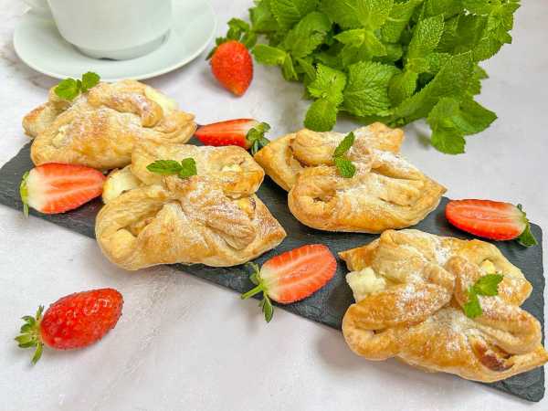 Слоеное тесто разморозьте при комнатной температуре. Раскатайте толщиной 4-5 мм ...