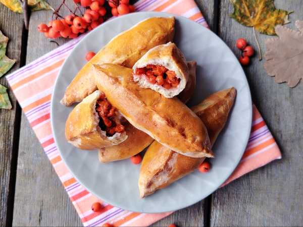 Собрать по списку продукты для приготовления пирожков с красной рябиной в духовке.