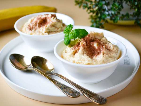Для приготовления одной порции взбитой овсянки с творогом и бананом возьмите ингредиенты по списку.