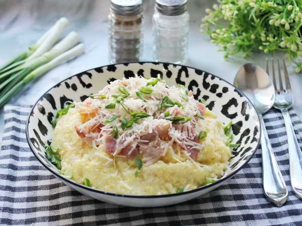 Соберите ингредиенты для приготовления пшенной каши с беконом.