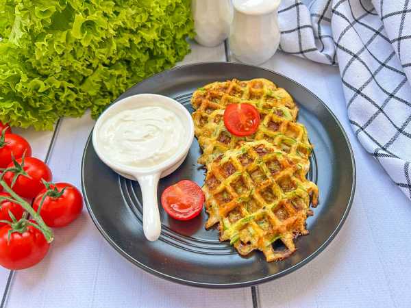 Соберите по списку все необходимые ингредиенты для приготовления вафель из кабачка без муки в вафельнице.