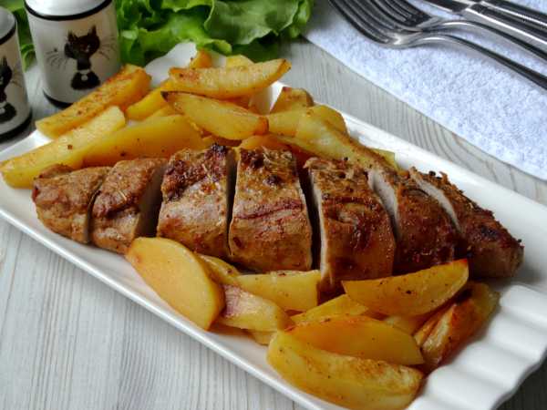 Чтобы приготовить свиную вырезку с картошкой в духовке, можно взять любые любимые специи или обойтись без них, готовлю всегда по-разному, под настроение.