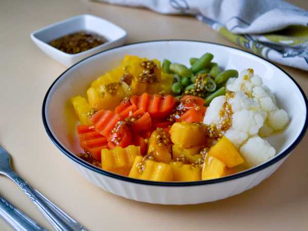 Соберите продукты для приготовления овощей на пару с соусом. Все овощи вымойте, обсушите, очистите от кожуры.
