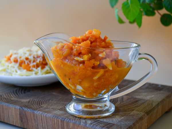Соберите продукты для приготовления тыквенно-томатного соуса.