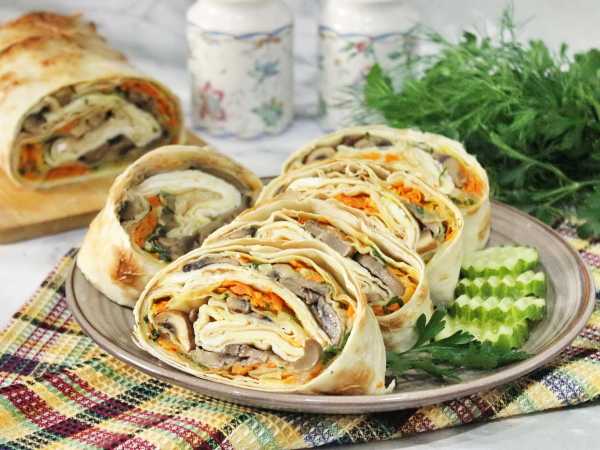 Соберите ингредиенты для приготовления рулета из лаваша с грибами в духовке.