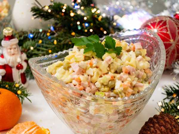 Соберите ингредиенты для приготовления салата Оливье на год Змеи.