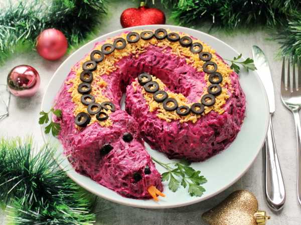 Подготовим необходимые продукты для салата «Мимоза» в форме венка. Картофель и морковь лучше заранее отварить в мундире в течение 20-30 минут, до мягкости, и оставить остыть. Свеклу также отвариваем, не ...