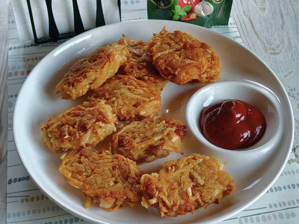 Хашбраун с беконом готовить будем из представленных ингредиентов. Так как картофель жарится в масле, лучше взять более мясистый бекон.