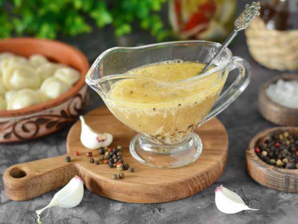 Соберите все необходимые продукты для приготовления чесночного соуса для пельменей.