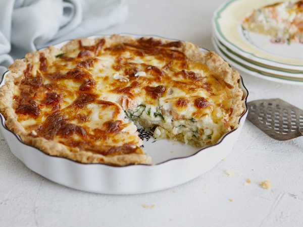 Для киша с лососем и шпинатом подготовьте ингредиенты по списку к рецепту. Лосось подходит разный (горбуша, нерка, кижуч и т.д.) и он может быть сырой размороженным, слабосоленым, копченым или даже ...