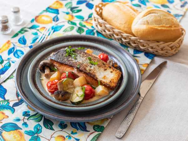 Подготовьте всё для приготовления припущенного судака. В этот раз я использовала готовое филе, но по этому же принципу вы можете готовить стейки судака, нарезанные из целой рыбы.