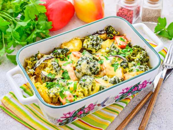 Перед началом приготовления овощей в духовке под сыром соберите все ингредиенты по списку. Пропорции и состав овощей можно немного изменить на свой вкус. Брокколи у меня замороженная. Размораживать предварительно не ...