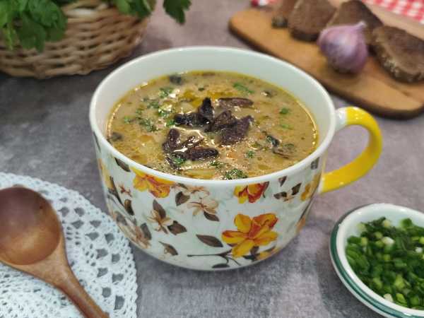 Чтобы сварить постную грибную похлебку с перловкой, возьмите все необходимое по списку. Если грибы свежие, то увеличьте их количество в 10 раз.