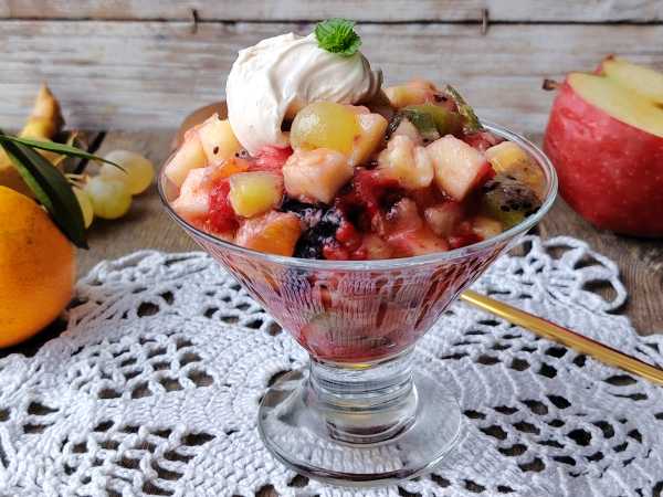 Чем бы полезным и вкусным порадовать себя и свою семью? Приготовьте салат из фруктов, используя свежие или консервированные фрукты и ягоды, добавьте орехи, пряности и заправьте десертным соусом или сиропом!