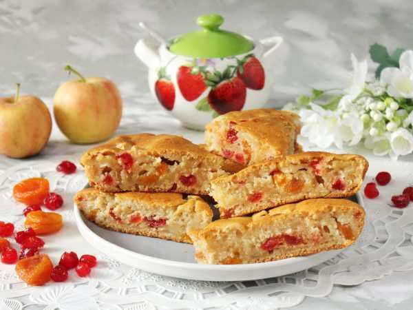 Ингредиенты для приготовления постного пирога с яблоками и сухофруктами - перед вами, на фото.