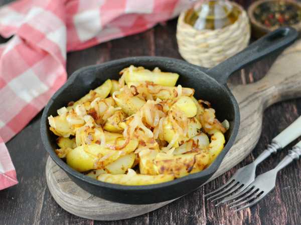 Соберите необходимые продукты и будем готовить жареную вареную картошку с луком на сковороде.