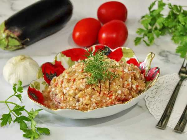 Очередной вкусный вариант приготовления икры из баклажанов. Подайте ее с черным хлебом.