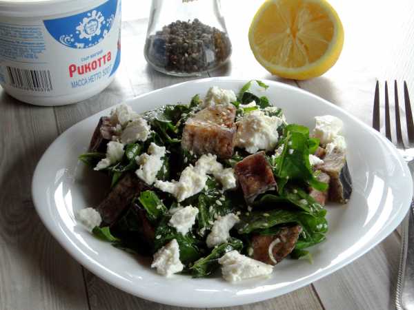 Салат с хрустящими баклажанами и руколой готовим из таких ингредиентов.