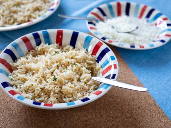 Соберём ингредиенты для приготовления риса с луком и сыром согласно списку.