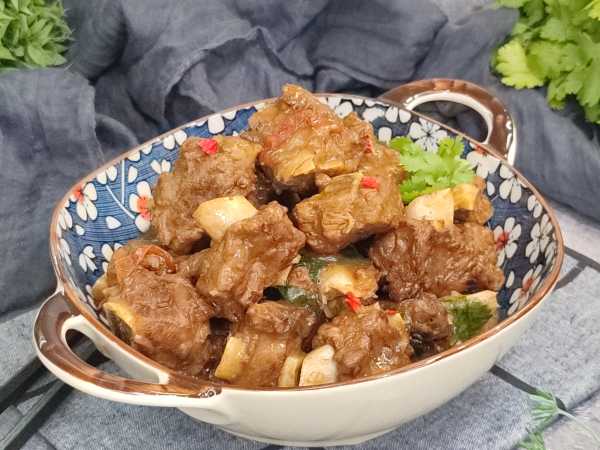 Соберите необходимые продукты для приготовления вкуснейших свиных рёбрышек в тёмном пиве на сковороде. Кстати говоря, если пиво у вас осталось от вчерашней вечеринки и немного выдохлось, то оно тоже подойдёт!