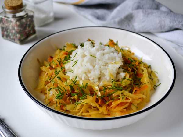 Соберите продукты для приготовления риса с солянкой из капусты. Морковь, лук почистите, у капусты снимите верхние жесткие листья.