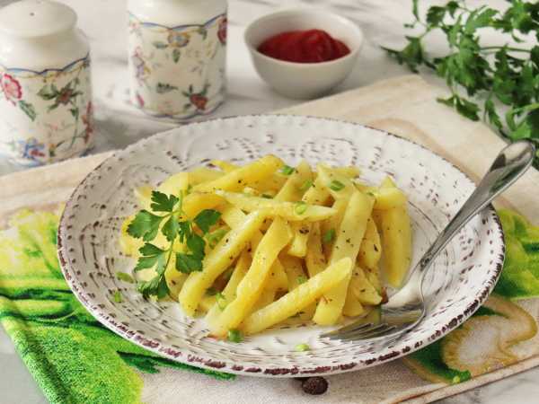 Картошку очистите, помойте и нарежьте брусочками.