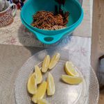 Лимон хорошо промоем и ошпарим кипятком. Затем разрежем на дольки и удалим косточки.