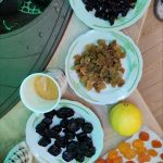 Сухофрукты: курагу, изюм, чернослив и инжир промоем, чтобы удалить с них пыль и грязь. Затем зальем водой и оставим на несколько часов (или на ночь). По прошествии времени воду сольем, сухофрукты промоем и обсушим.