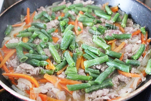 В конце тушения добавьте зелёный горошек или зеленую фасоль.