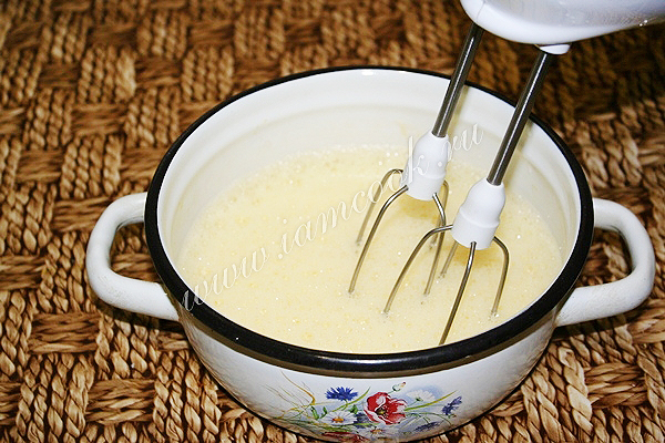 Яйца взбейте в глубокой миске или в небольшой кастрюльке. Не прекращая взбивания, добавьте лимонный сок.