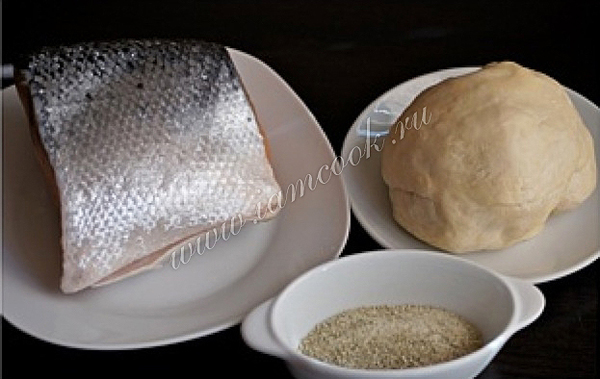 Очень простой и вкусный рецепт приготовления рыбного пирога с начинкой из филе форели или семги. Тесто в нем используется такое же, как и для пиццы, одно из моих любмых.