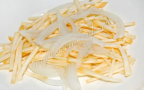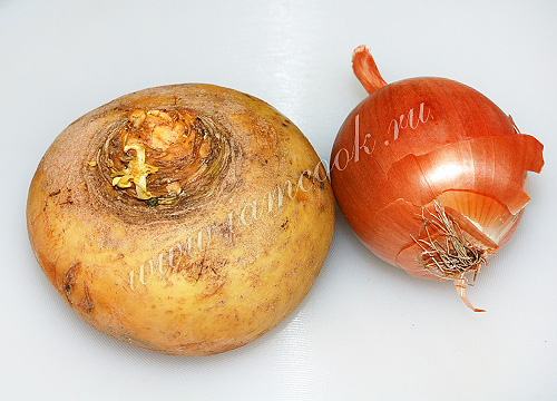 Приготовить репу и репчатый лук.