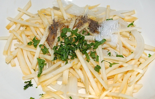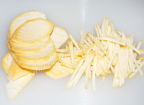 Овощи почистить, постараться нарезать репу как можно тоньше.
