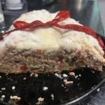 В подошедшее тесто добавьте начинку. Начинки получается больше чем теста – это отличительный признак хорошего штоллена. Поначалу может показаться, что вместить такое количество начинки тесто просто не сможет, но это не так. Добавляйте начинку небольшими порциями, постепенно вмешивая ее в мягкое тесто, и все получится.