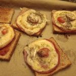 Гавайские тосты готовы. И смотрите, какие очаровательные дырочки образуются в центре ананасных шайб! Поэтому - именно шайбы, а не кусочки ананасов! Для пиццы - не важно, а вот для тостов - вопрос эстетики!