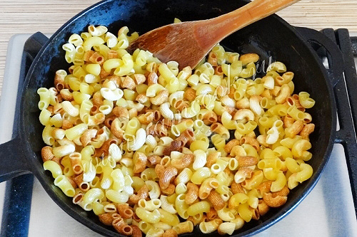 3. Каждая макаронинка должна пропитаться маслом, поэтому все время обжарки перемешиваем макароны.