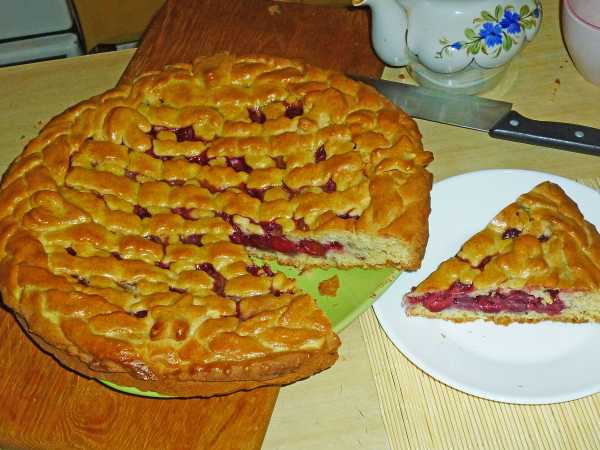 "Изюминка" этого пирога в сочетании двух видов теста. Начинка должна быть не сильно жидкой, чтобы она могла пропитать нижний слой и при этом не сильно растечься. В качестве начинки можно брать хоть свежие ягоды или фрукты, хоть варенье (как в данном случае).