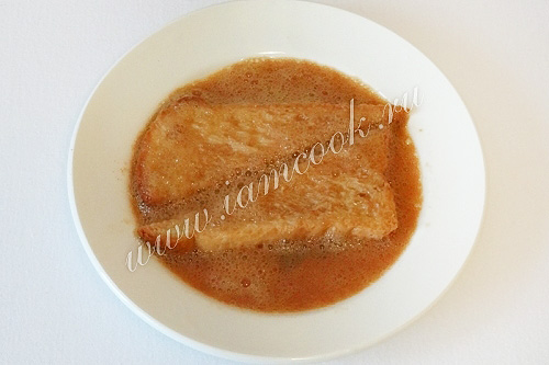 5. Залить яично-чайной смесью 2 треугольничка хлеба минуты на 3.