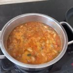 Тем времени чечевица сварилась. Выкладываем в кастрюлю баклажаны и заправку. Проварим несколько минут. Солим, перчим по вкусу.