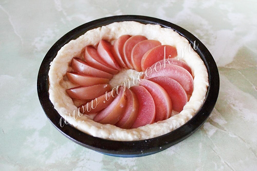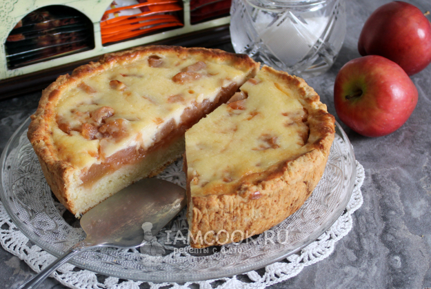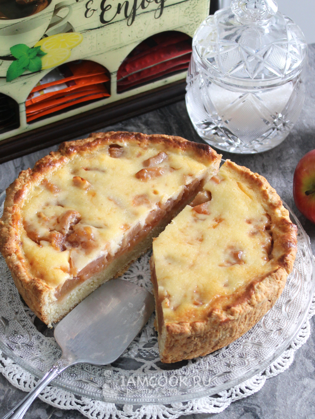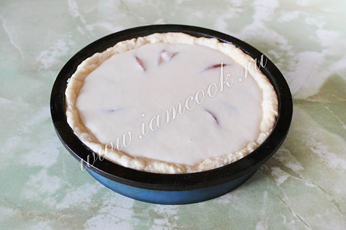 Пирогу нужно дать полностью остыть, тогда заливка лучше схватится и будет кремообразной, а у горячего пирога она ещё немного жидковатая. Приятного чаепития! Пеките этот пирог почаще и с самыми разными фруктами :)