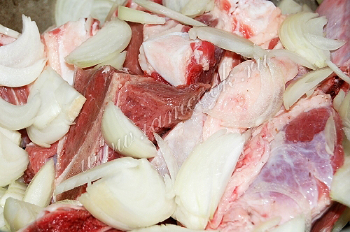 Для хашламы из говядины лучше использовать грудинку, порубленную на небольшие кусочки. Количество овощей зависит от вашего вкуса и желания, можно добавить картофель, морковь. Можно готовить хашламу с водой, и без добавления воды, когда она готовится в собственном соку.