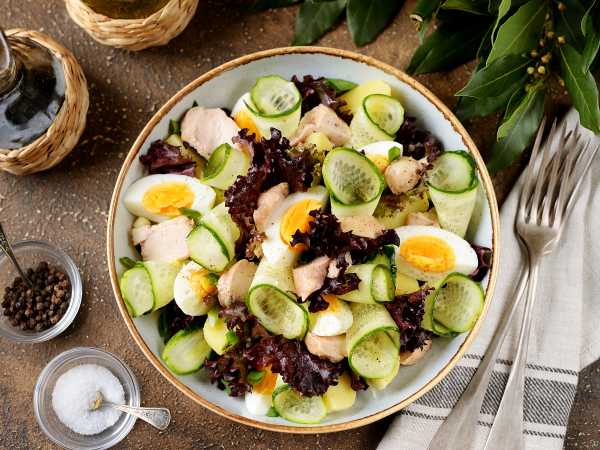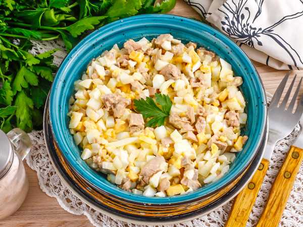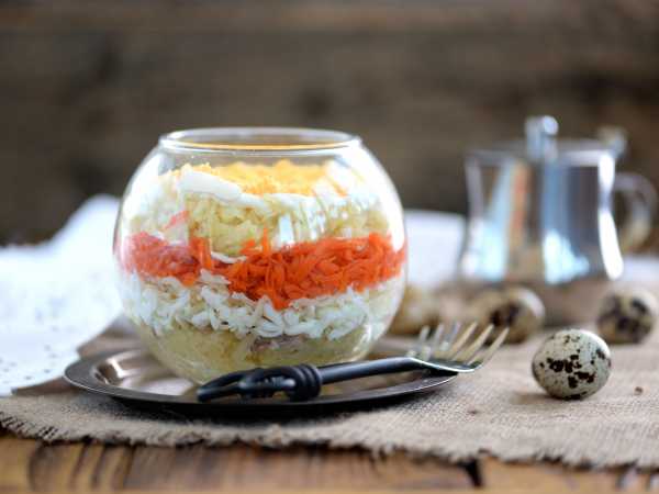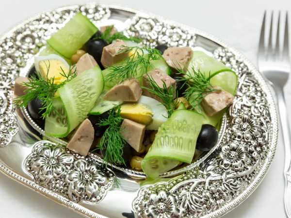 Произвольно украсив, подаем домашний салат с печенью трески и рисом сразу же, долгая пропитка не нужна. Приятного аппетита!