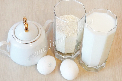 1. Для приготовления блинчиков потребуется кукурузных крахмал, сливки (жирностью не менее 20%), яйца, сахар или сахарная пудра, немного подсолнечного масла, соль.