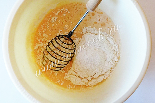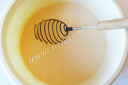 5. Долить оставшиеся сливки, размешать до однородной массы. Тесто получиться довольно жидким.