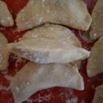 Вот такие вареники у меня получились. Я заморозила большую их часть. Для этого нужно разложить вареники на подносе, припыленном мукой, заморозить, а потом упаковать в пакетики. Использовать по надобности.