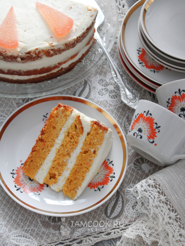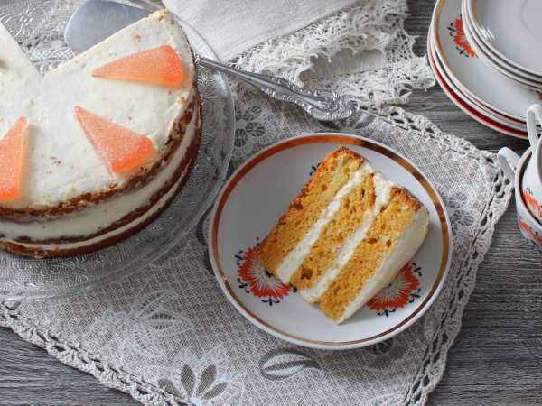 Промазывая сочные морковные коржи кремом, соберите торт целиком.